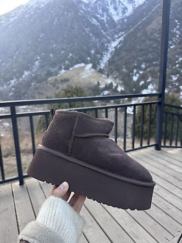 Угги короткие на платформе - Из натуральной замши высокого качества - Мягкая и теплая шерсть - Нескользящая высокая подошва хорошо сохраняет тепло Размерный ряд: 37-38-39 Цвета: коричневый, серы...