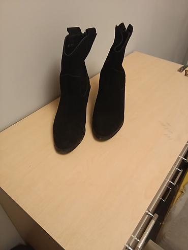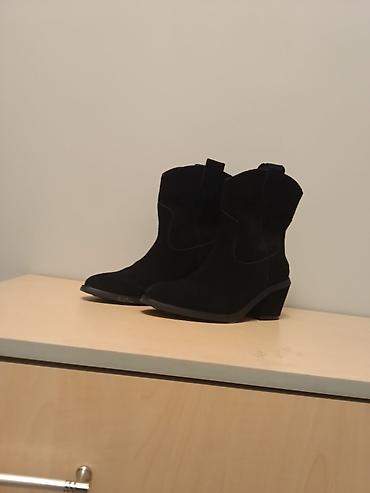 Женские замшевые ботильоны-ковбойки, черные. - Материал: мягкая замша
