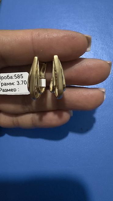 Золотые серьги-подвески с геометрическим рельефом - Материал: золото - Проба: 583 (указано на ярлыке) - Вес: 3,43 г - Производство: СССР (указано на ярлыке) - Замок: английский (петля с фиксатором...