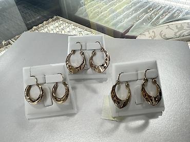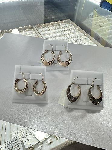 Золотые серьги-подвесы (швензы) в форме мини-колец/полумесяцев.