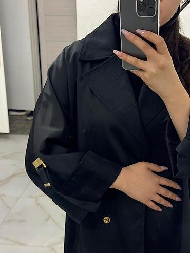 Состояние: один выход / как новый • Материал: эко-кожа • Цвет: чёрный • Фасон: двубортный, с поясом • Длина: миди • Детали: погоны, регулируемые манжеты • Отлично держит форму • Подчёркивает...