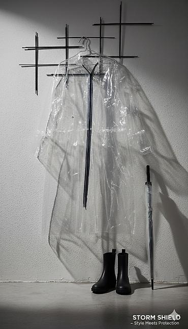 Прозрачный дождевик + стёганый жилет - Прозрачный плащ-дождевик до