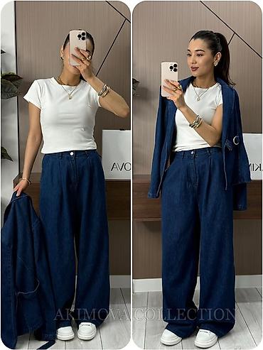 Женский комплект из денима: рубашка+брюки - Состав: плотный джинсовый