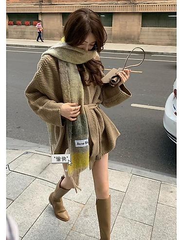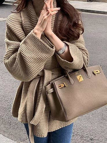 Кардиган женский с поясом - Мягкая вязаная модель без застёжек, с