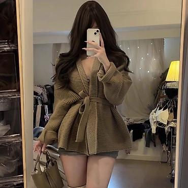 Вязаный кардиган с поясом - Модель: свободный кардиган без застёжек, на поясе - Цвет: тёплый коричневый (меланж) - Длина: до бедра Новый Цена: 1700 сом Размер до 50