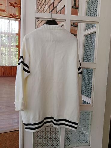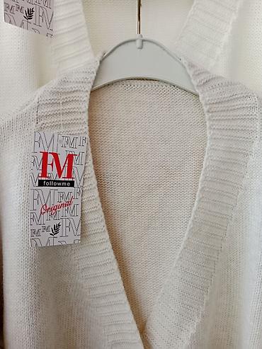 Теплый женский кардиган цвета молочный/айвори. - Свободный крой, укороченная длина до талии - Глубокий V-образный вырез - Застежка на три крупные металлические пуговицы спереди - Длинные рукава с ...