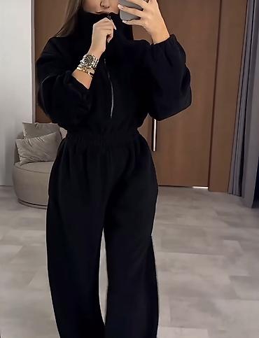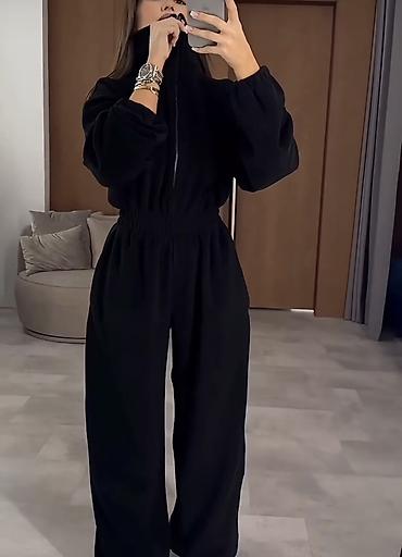 Женский комбинезон, черный - Свободный крой, длинные широкие брючины