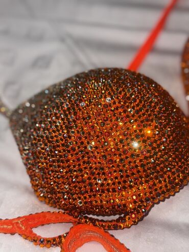 - Отделка: полностью украшен плотной россыпью страз (градиентные отблески от янтарного до красноватого).
