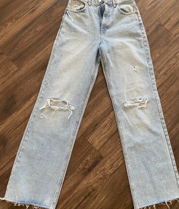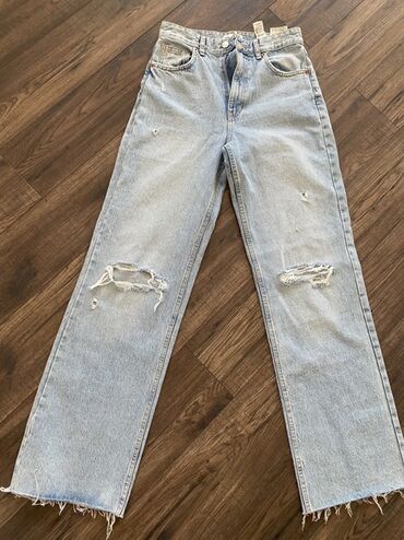 Зара джинсы Zara Новые Джинсы Одежда женская Брюки Зара 36 размер Момс На высокой посадке Большемерят Новые Синие ГолубыеВход•Регистрация