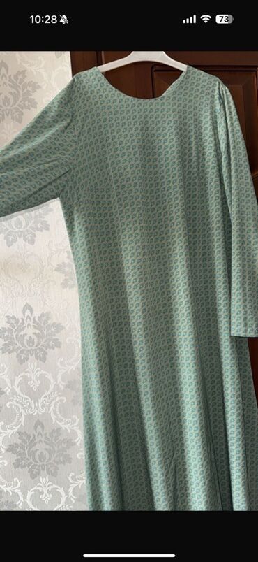 4) Платье мятного оттенка с мелким геометрическим принтом