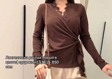 - Глубокий V-вырез с кружевной отделкой, драпировка и завязка на боку, длинный рукав
