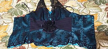 - Цвет: глубокий бирюзово‑синий с черным кружевом