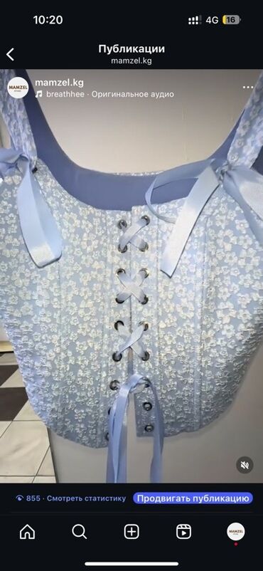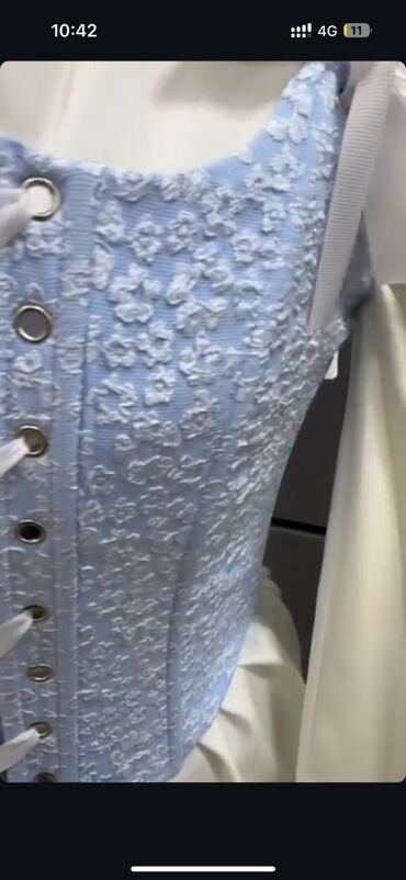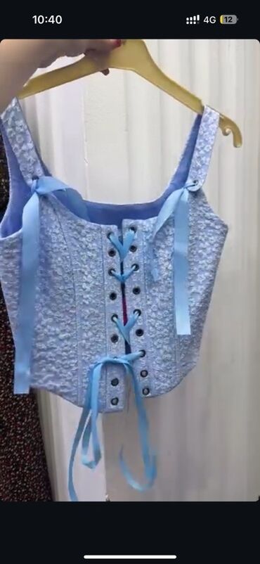 Корсет-топ женский, голубой с цветочной фактурной вышивкой.