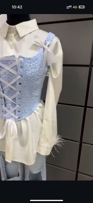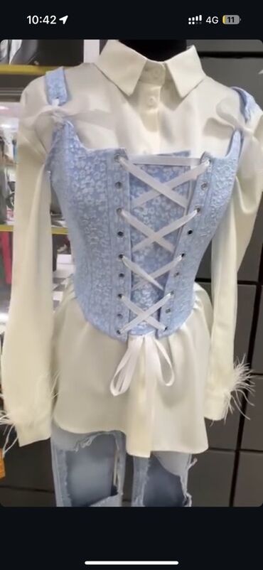 - Застежка/посадка: регулируемая шнуровка спереди белой атласной лентой позволяет утянуть талию и подогнать по фигуре.