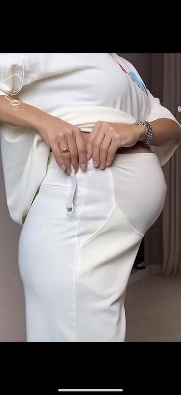Практичный сет, который подстраивается под фигуру на любом сроке беременности и выглядят стильно благодаря лаконичному принту.