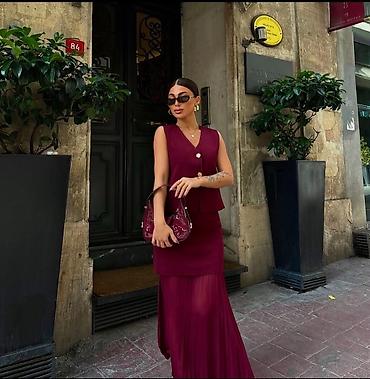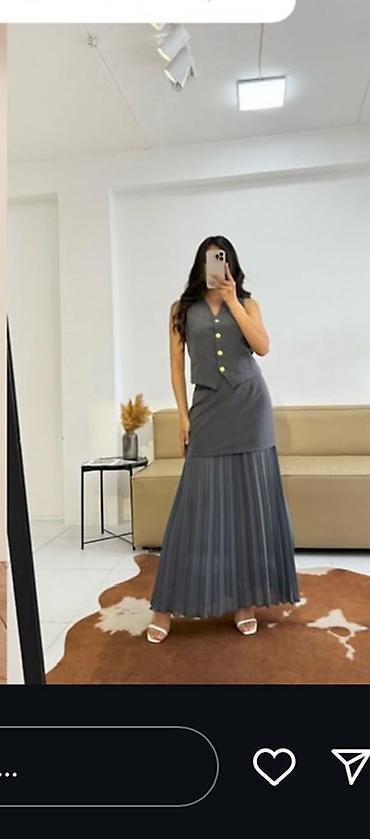 Костюм с юбкой, Модель юбки: Плиссе, Макси, Жилет, S, M