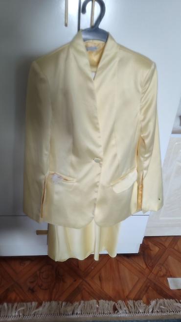 Элегантный женский комплект из блестящего атласного материала в нежно‑лимонном оттенке.