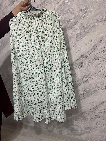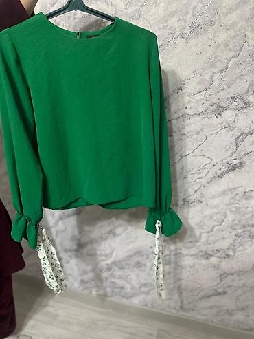 Стиль: повседневный/романтичный, отлично смотрится как вместе, так и по отдельности. Цвета гармонируют: насыщённая зелень блузы подчёркивает принт юбки. Подходит для тёплого сезона, прогулок, офиса с нестрогим дресс‑кодом и встреч.