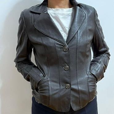 Женский кожаный жакет-пиджак, темно‑коричневый.