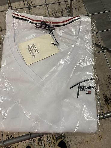 - Tommy Hilfiger: модели с V‑образным вырезом, фирменная тесьма по внутренней горловине в триколоре бренда, вышитый логотип “Tommy” на груди. Доступны в белом и красном цвете.