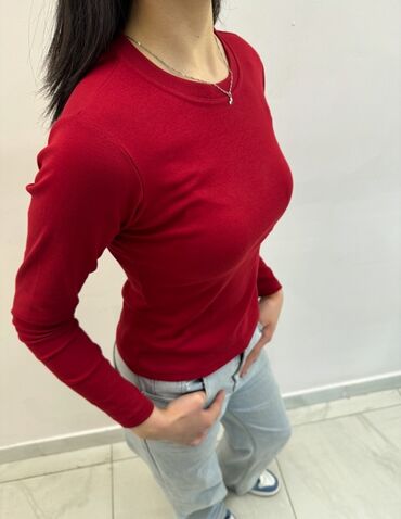 Базовый лонгслив женский с длинным рукавом. STRADIVARIUS XS - Цвет: глубокий винно-сливовый (бордовый). - Посадка: облегающая, подчеркивает силуэт; длина до бедер. - Горловина: круглая, аккуратная...