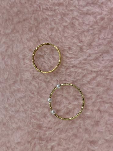 - Кольцо 2: тонкое фактурное кольцо с тремя небольшими белыми бусинами (жемчужинами-имитациями) равномерно распределёнными по окружности.