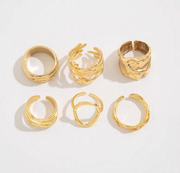 Набор кольец в золотистом цвете, 6 штук.