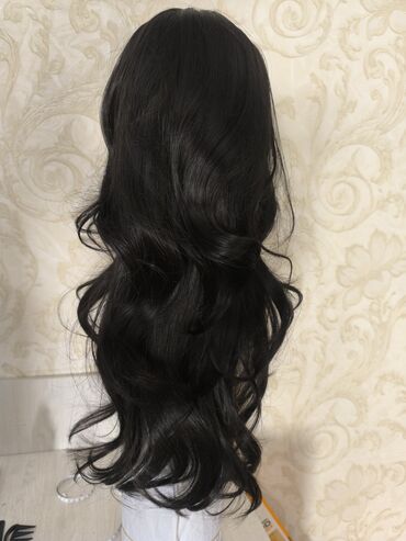 Длинный парик натурального черного оттенка с мягкими волнами и легкой «французской» челкой.