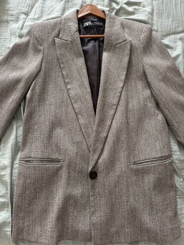 Укороченное женское пальто-жакет с поясом - Силуэт: прямой с объёмными рукавами, регулируется поясом на талии. - Застёжка: молния по центру + планка на кнопках/пуговицах. - Ворот: стойка, держит ф...