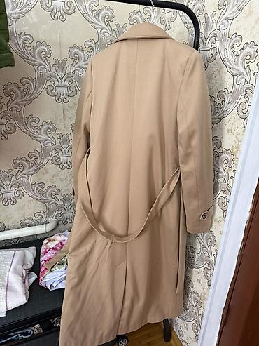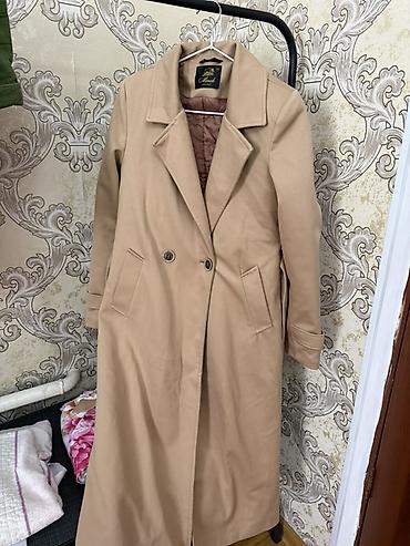Длинное женское пальто-тренч бежевого цвета. Особенности: -