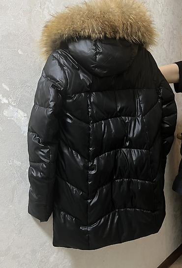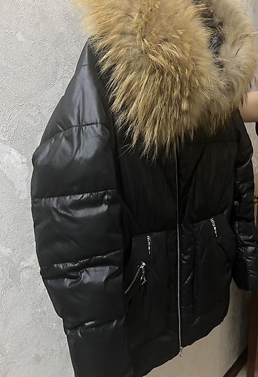 - Теплый объемный капюшон с крупным натуральным мехом по краю.
