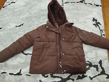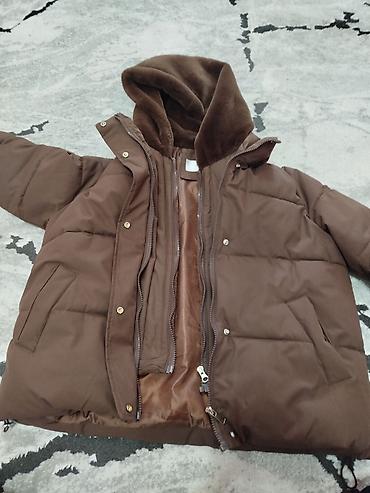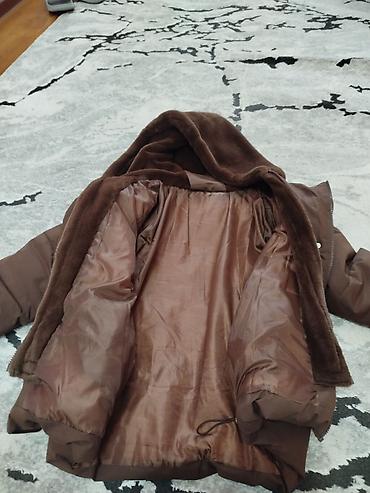 Тёплая зимняя куртка-пуховик, коричневый цвет.