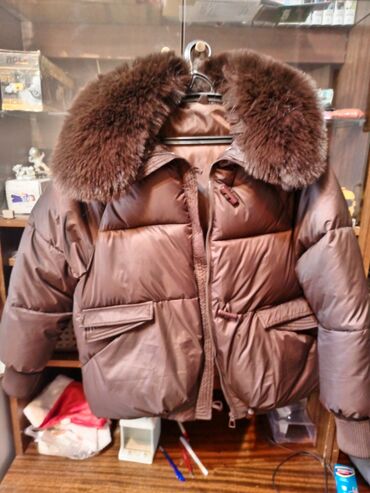 - Меховой воротник большого объема (темно‑коричневый), съемность не указана.