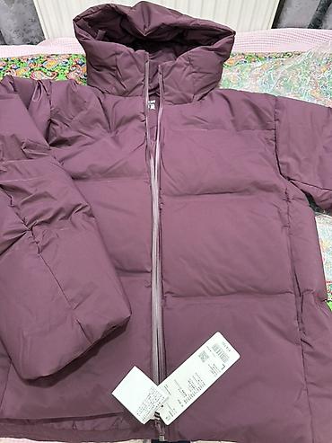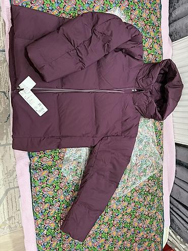Пуховик с капюшоном, бордовый/сливовый цвет.