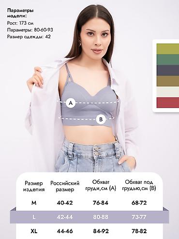 • L (42–44) → грудь 80–88 см, под грудью 73–77 см