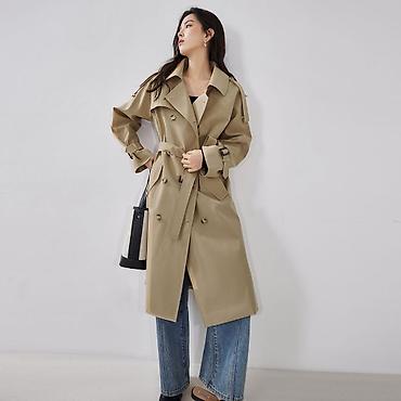 Женский тренч классического кроя, бежевый. - Двубортная застёжка с