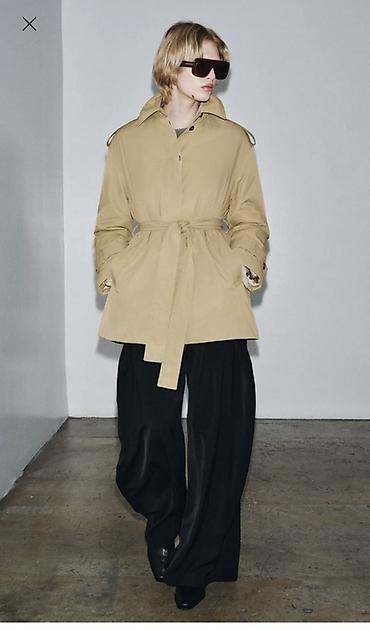 Бежевый укороченный тренч с поясом