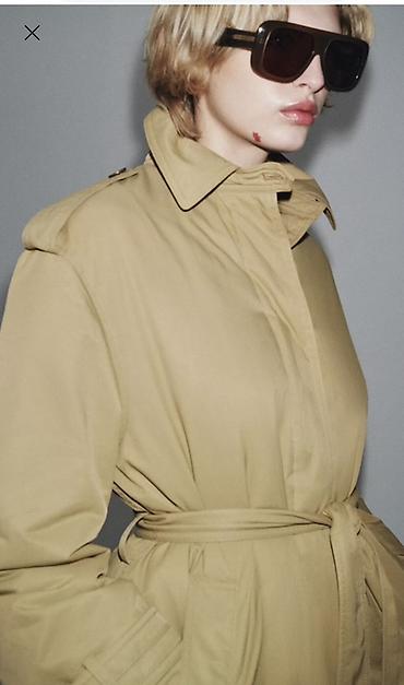 Новый с этикеткой с размером не подошло нам. Длинный женский тренч