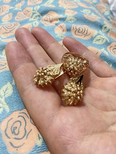 - Дизайн: объёмные цветочные «шишечки» с резным и зернённым орнаментом, ажурные элементы, плавные лепестки. Серьги выполнены на подвесах-«каплях» с декоративной гравировкой, кольцо с крупной центральной цветочной композицией.