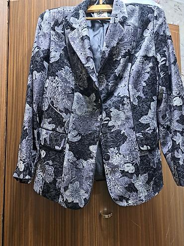 2) Жакет жаккардовый с цветочным узором в серо‑черной гамме.
