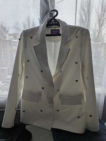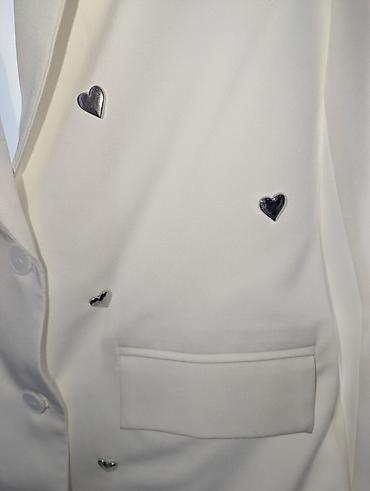 Женский пиджак в полоску - Цвет: черный с тонкой светлой вертикальной полосой - Крой: прямой, удлиненный силуэт - Застежка: одна пуговица спереди - Воротник: классические лацканы средней ширины - ...