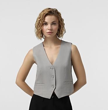 Жилет женский без рукавов в стиле modest - Фасон: двубортный, на