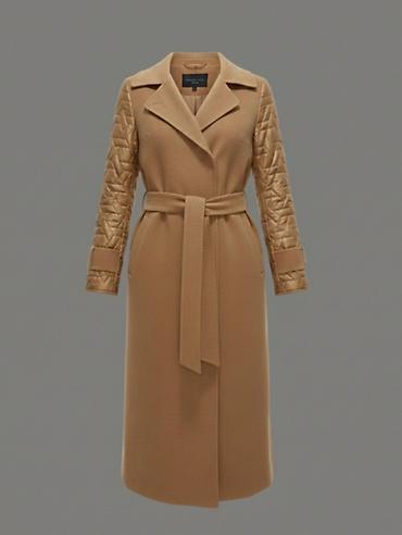Стиль: элегантная верхняя одежда на прохладный сезон, сочетает классическое пальто и легкий утепленный плащ. Цвет — теплый карамельно-бежевый. Подходит для повседневных и деловых образов.