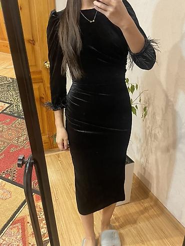 Напишите уступлю🌸 Элегантное черное платье миди с расклешенным низом-русалкой. - Силуэт: приталенный, подчеркивает талию, плавно расширяется к подолу. - Длина: ниже колена/миди. - Верх: закрытый к...