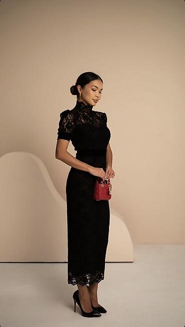 Элегантное черное кружевное платье миди - Силуэт: приталенное миди с