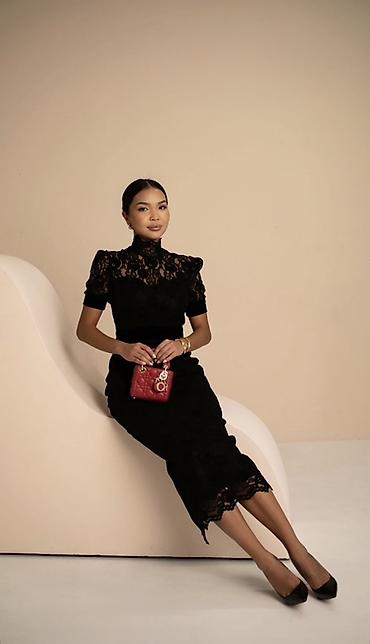 Идеально для вечерних выходов, коктейлей и торжеств. Платье подчеркивает фигуру, оставляя изящный, сдержанно-романтичный образ; хорошо сочетается с лодочками и компактной сумкой.