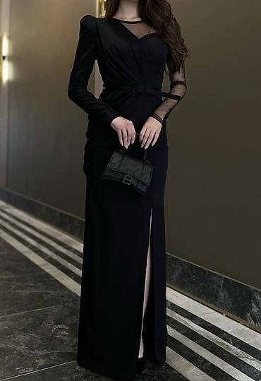 Вечернее платье, Коктейльное, Длинная модель, Трикотаж, С рукавами, Один рукав, XS, S