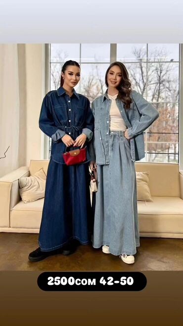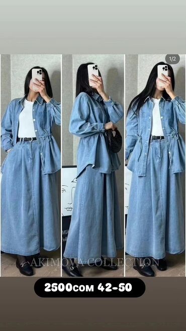 Элегантное джинсовое двойка с длинными рукавами и воротником-стойкой. Модель выполнена в универсальном синем цвете, имеет застежку на пуговицах спереди и регулируемую кулиску на талии для создания желаемого силуэта. Длинная юбка обеспечивает комфорт и свободу движений. Подходит для повседневной носки, создавая стильный и практичный образ.Идеально для различных мероприятий, от прогулок до неформальных встреч.