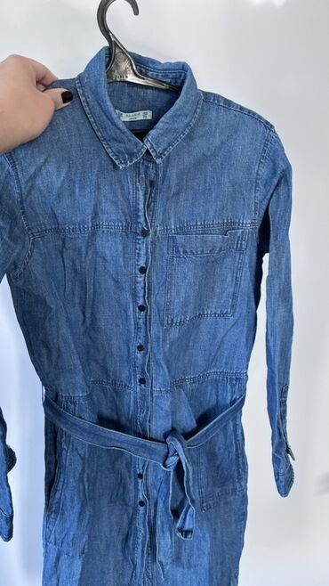 Повседневное платье, Осень-весна, Длинная модель, Джинс, Платье-рубашка, S