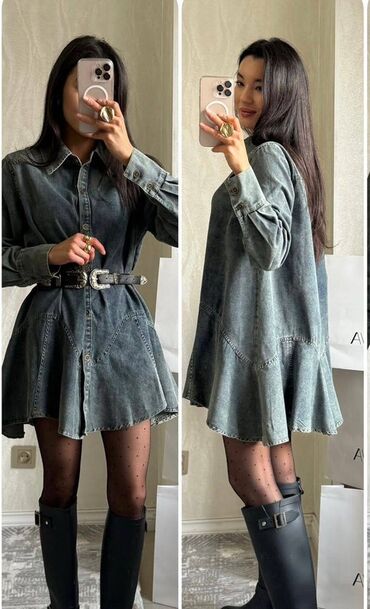 - Универсальность: сочетается с колготками, высокими сапогами, кроссовками; носится как самостоятельное платье или как длинная джинсовая рубашка поверх топа/платья